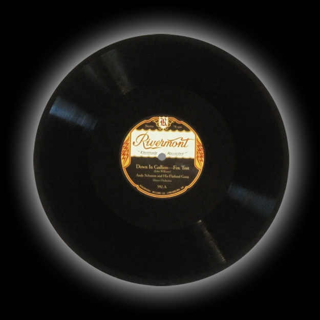 Andy Schumm is a remarkable cornestist rooted in the jazz traditions of the 1920s. Based in Wisconsin, he has performed throughout the United States and abroad with bands such as the West End Jazz Band, Vince Giordano's Nighthawks, Jim Dapogny's Chicago Jazz Band, and the Archipelago Project. With his Flatlang Gang, Schumm revives obscure but deserving jazz tunes of the '20s. For this freshly-recorded 78 rpm disc, the band plays "Down In Gallion" (originally recorded by John Williams' Synco Jazzers in 1927) and "The Swing" (based on the recording by Johnny De Droit's New Orleans Orchestra in 1924).